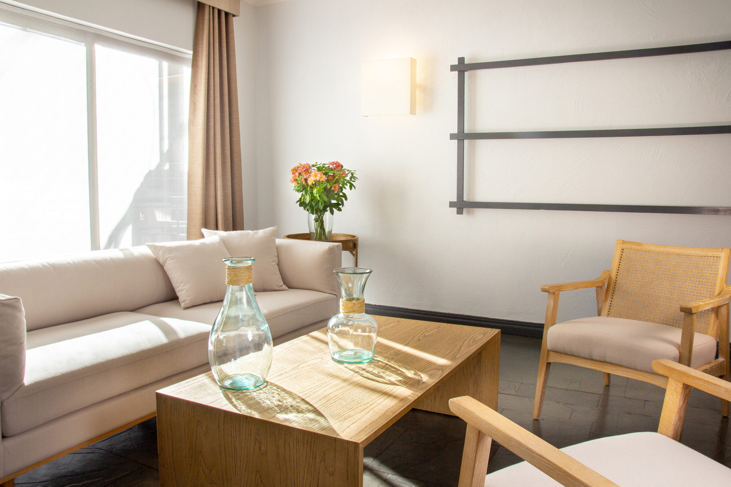 Sala de estar con TV, aire acondicionado, calefacción, teléfono, WI-FI gratuito, minibar y caja de seguridad.